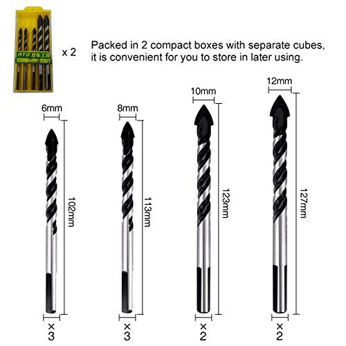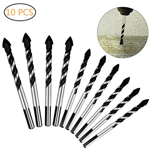 SmartLegend 10本組み ドリルビット 穴あけ 作業工具 タイル コンクリート レンガ ガラス プラスチック 木材(6mm 8mm 10mm 12mm 10本組み,ケース付き)