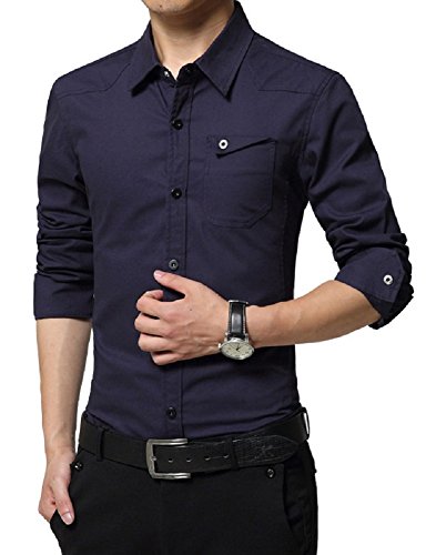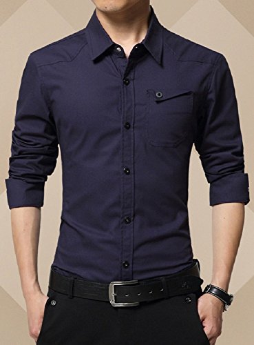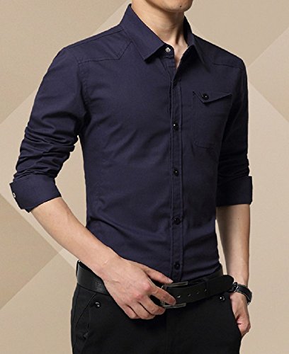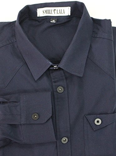 【Smile LaLa】 メンズ シャツ カッターシャツ ワイシャツ ビジネス シンプル 長袖 襟 付き 男性 用 無地 春 夏 秋 冬 (XL, ネイビー)