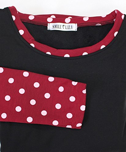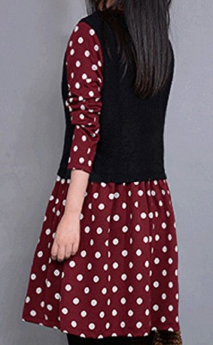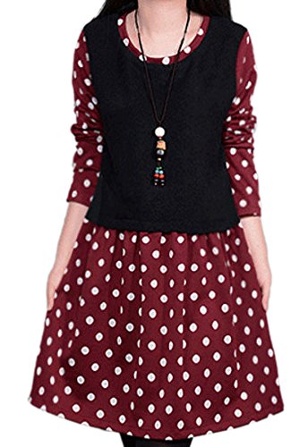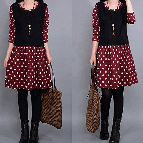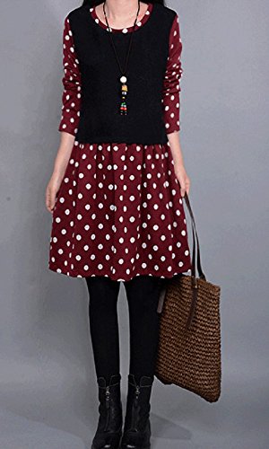 【Smile LaLa】 レディース ワンピース チュニック ドット 長袖 ネイビー ボルドー ワインレッド 春 秋 冬 (XXL, レッド)