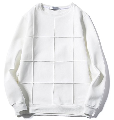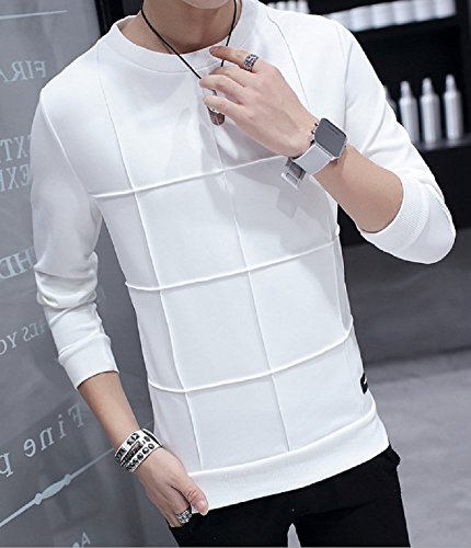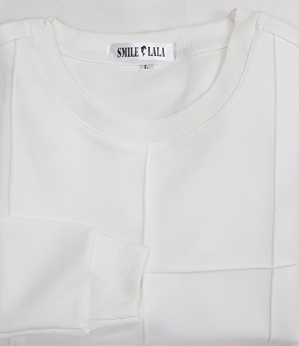 【Smile LaLa】 メンズ Tシャツ カットソー トレーナー シンプル カジュアル ブロック チェック ライン ブラック ホワイト 春 秋 (3XL, ホワイト(ブロック))