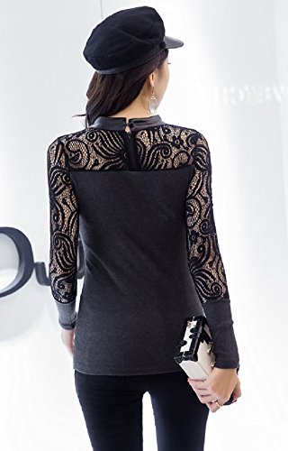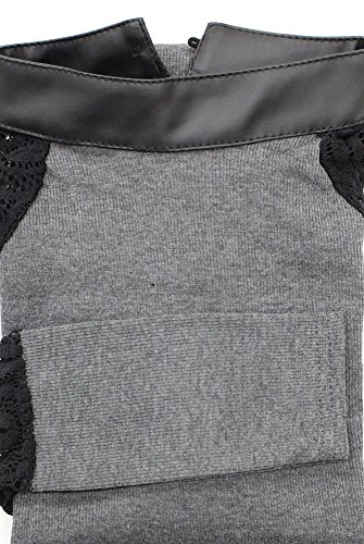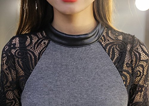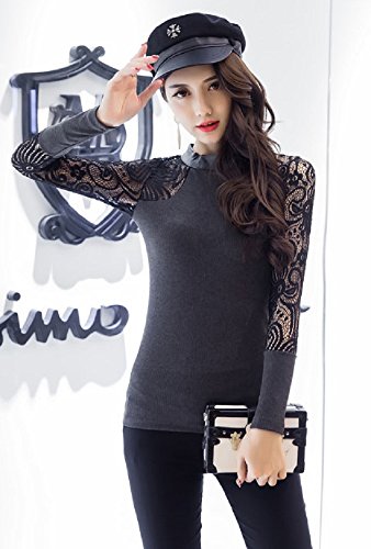 【Smile LaLa】 レディース トップス カットソー Tシャツ 長袖 レース セクシー シンプル カジュアル ブラック グレー 春 秋 (2XL, グレー)