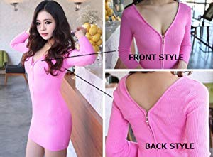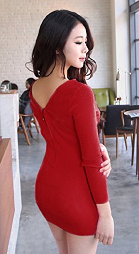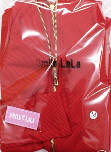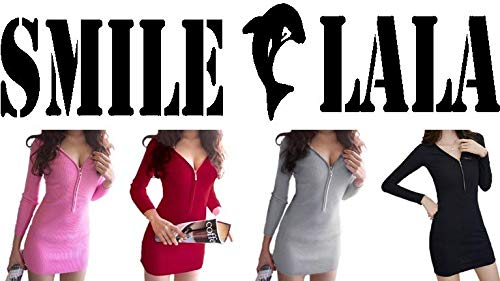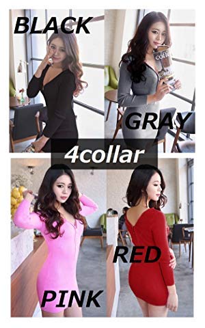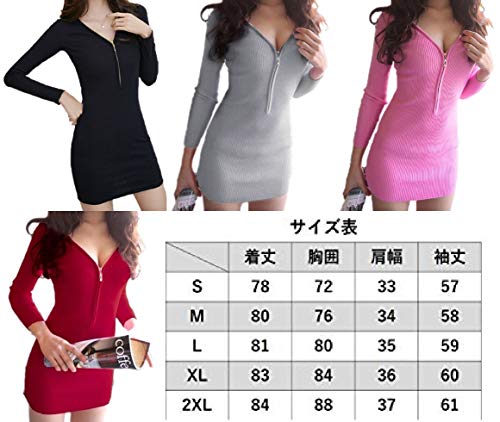 【Smile LaLa】 レディース ワンピース ワンピ トップス ミニ 長袖 セクシー ジップ 胸開き タイト スリム きれいめ 春服 秋服 (M, レッド)