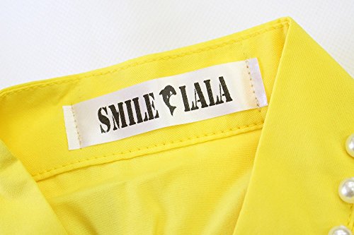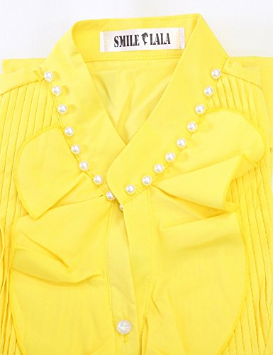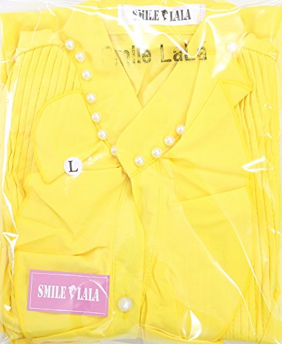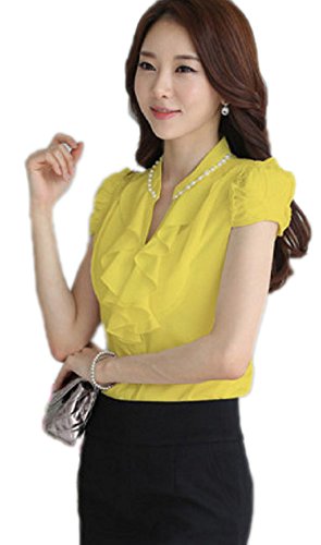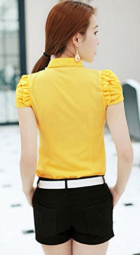 【Smile LaLa】 レディース 半袖 シフォン ブラウス オフィス カジュアル 通勤 清楚 フォーマル フリル シャツ エレガント (L, イエロー)