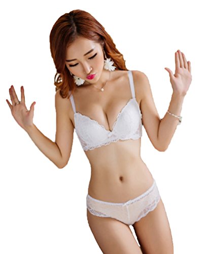 【Smile LaLa】 レディース ブラジャー ショーツ 下着 上下 2点 セット ランジェリー セクシー レース 女性 大人 綺麗 かわいい (B75, ホワイト)