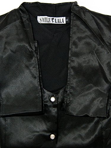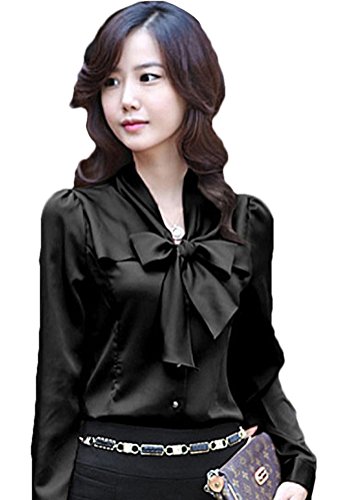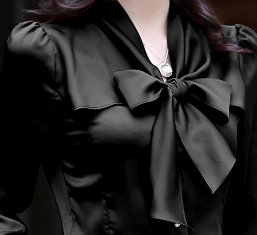 【Smile LaLa】 レディース ブラウス シャツ トップス 長袖 オフィス リボン サテン フォーマル 通勤 細身 セレブ 上品 オトナ (M, ブラック)
