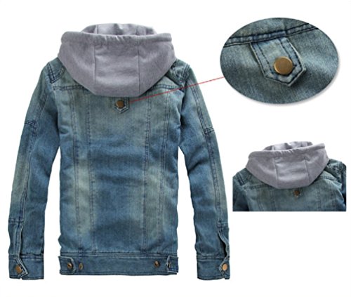 - 毎年必ずトレンドになるデニムジャケットです。こちらの商品はフードの取り外しができるので、着用の仕方を二通りにかえられます。フードがついている時は、パーカーとの重ね着をしているような、アメカジ系やストリート系なオシャレを楽しめます。フードを取り外した時はクールなスタイリッシュなお兄さん系に大変身☆様々な着こなしができますので、自分流のオシャレを楽しんでみてはいかがですか??