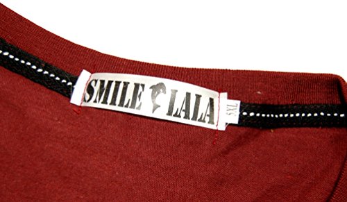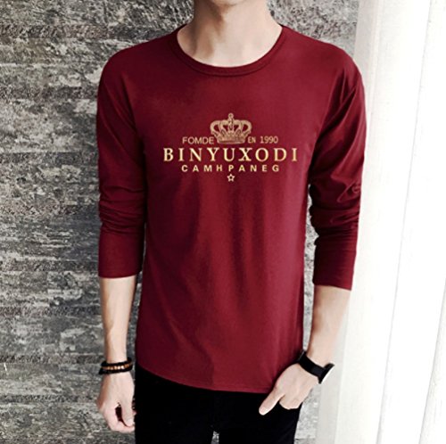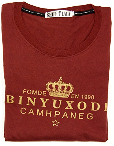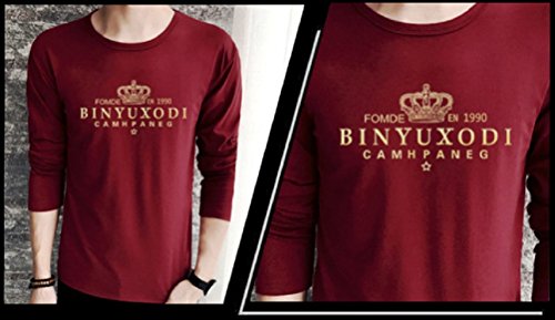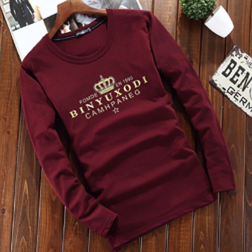 【Smile LaLa】 メンズ Tシャツ 長袖 王冠 クラウン 英字 ロゴ プリント クルー ネック シンプル スタイリッシュ カジュアル (レッド, S)