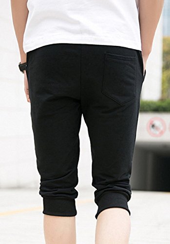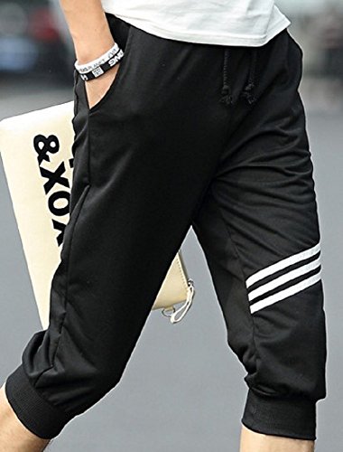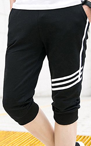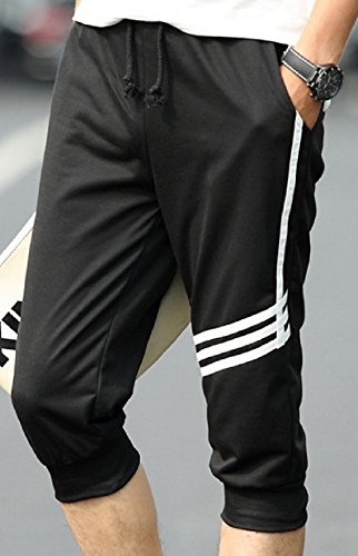 【Smile LaLa】 メンズ レディース スウェット パンツ 七分丈 ジム スポーツ ウェア ルーム ジャージ 部屋着 男女兼用 ペア ライン 春 夏 秋 冬 オール シーズン (M, ブラック)