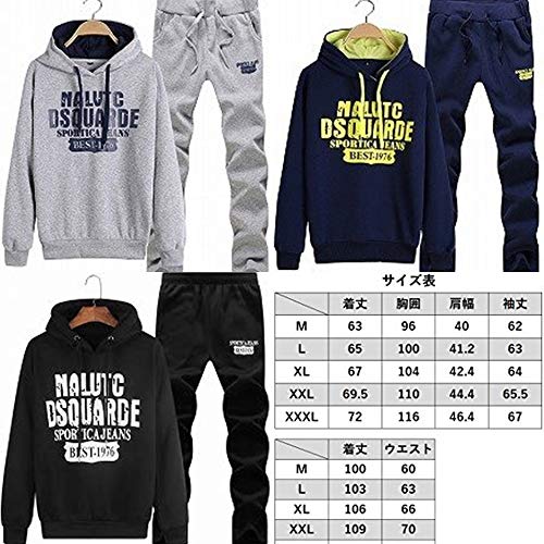 【Smile LaLa】 メンズ スウェット パーカー ジャージ プルオーバー 上下 セット セットアップ フード 付き スポーツ ジム ルーム ウェア 部屋着 普段着 カジュアル シンプル 長袖 春 秋 冬 (XXXL, グレー)