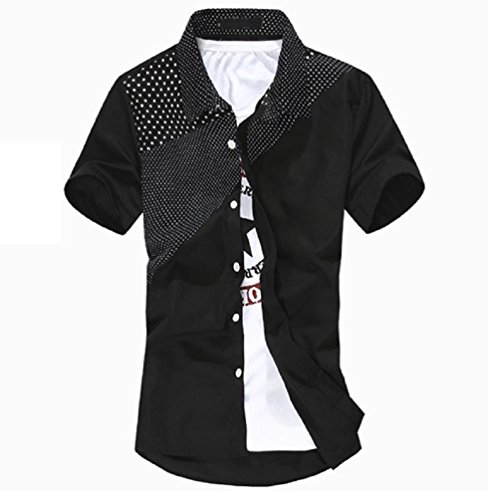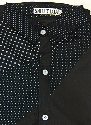 【Smile LaLa】 メンズ シャツ トップス インナー 半袖 夏 ゆったり 大きい サイズ ドット 柄 シンプル おしゃれ (ブラック, XL)
