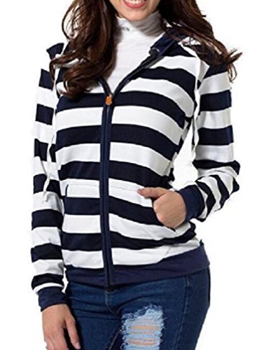 【Smile LaLa】 レディース トップス 長袖 パーカー トレーナー フード ボーダー ポケット 付き シンプル カジュアル 部屋着 (M)