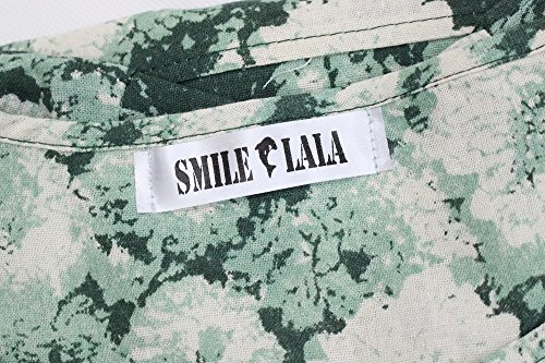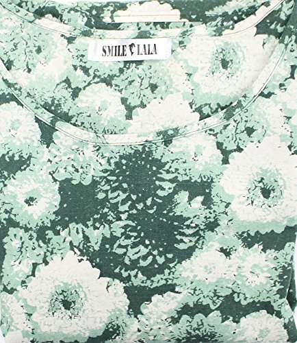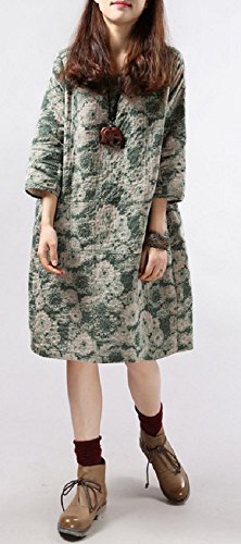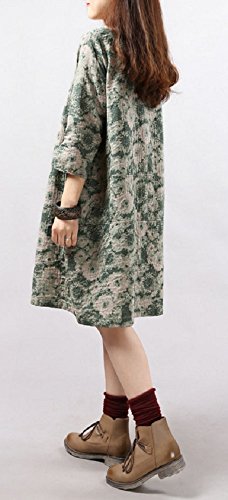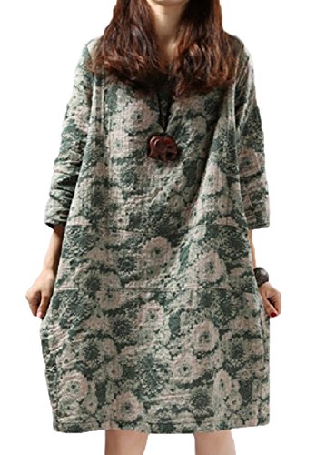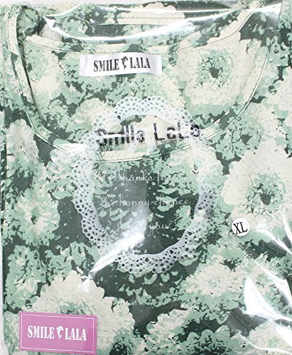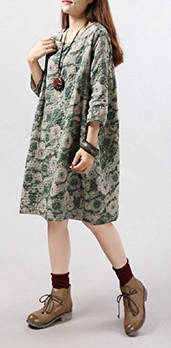 【Smile LaLa】 レディース ワンピース ワンピ 花柄 ナチュラル シンプル 七分袖 チュニック ゆったり ひざ丈 カジュアル (XL, グリーン)