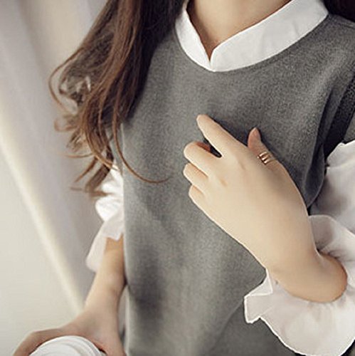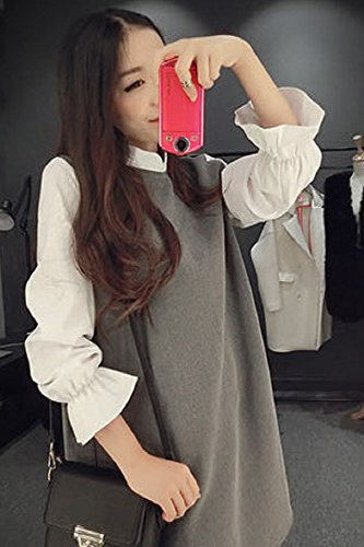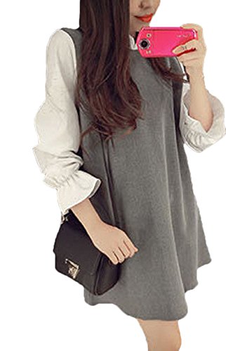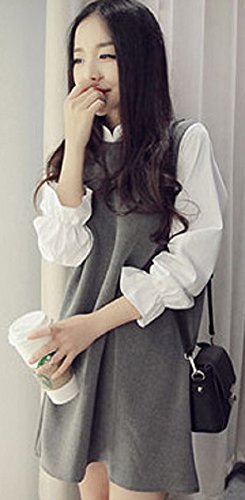 【Smile LaLa】 レディース チュニック ワンピ ワンピース 長袖 きれいめ カジュアル 清楚 シャツ トップス フリル シンプル (L, グレー)