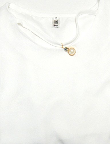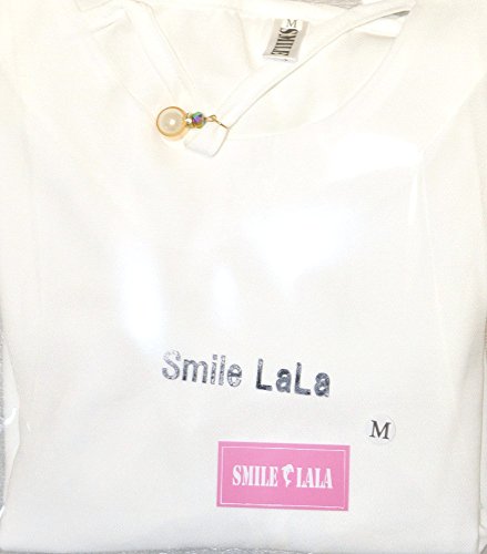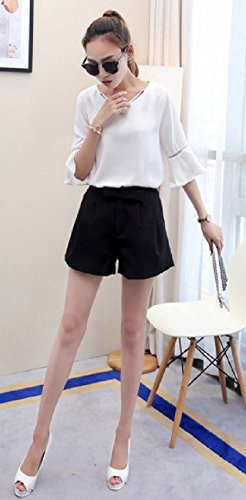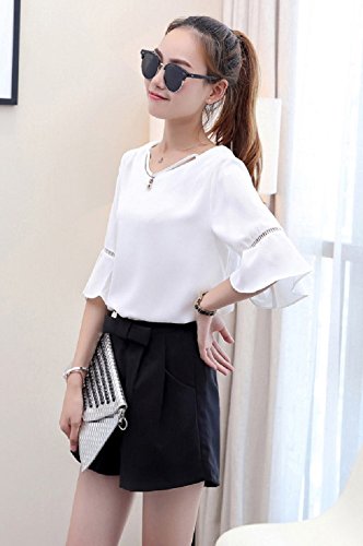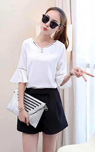【Smile LaLa】 レディース フレア スリーブ フェミニン シフォン 五分袖 シンプル ブラウス チャーム ストラップ 付き Vネック (XL, ホワイト)