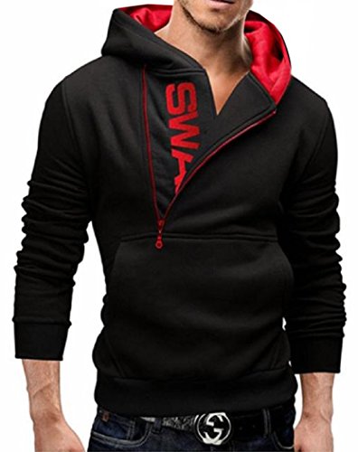 【Smile LaLa】 メンズ パーカー スウェット トレーナー ロゴ シンプル カジュアル 長袖 ブラック ブルー グレー レッド (M, ブラック&レッド)