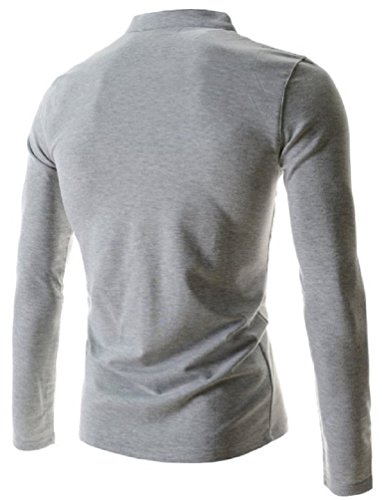 【Smile LaLa】 メンズ 長袖 Tシャツ トップス シンプル 無地 ヘンリー ネック ボタン インナー 薄手 カジュアル スリム 男性 (ライトグレー, M)