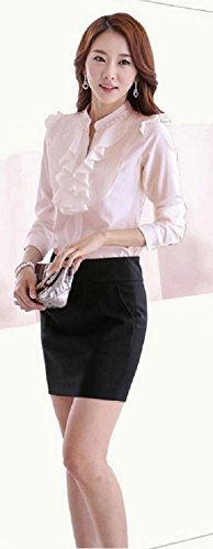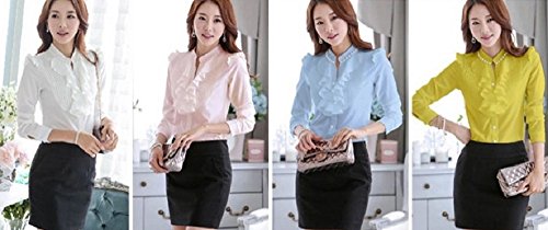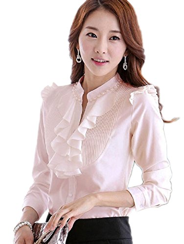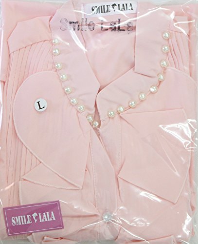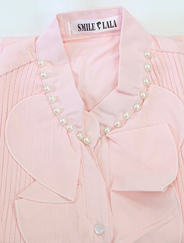 【Smile LaLa】 レディース 長袖 シフォン ブラウス オフィス カジュアル 通勤 清楚 フォーマル フリル シャツ エレガント (XL, ピンク)