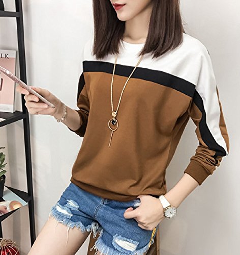 【Smile LaLa】 レディース カジュアル トップス シンプル Tシャツ カットソー 長袖 オーバー ゆる 薄手 オシャレ クール 着回し (ブラウン, XL)
