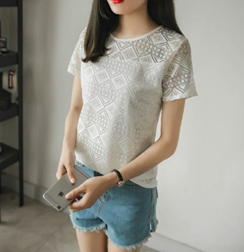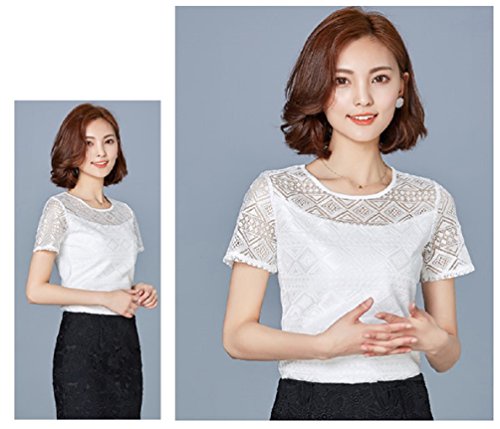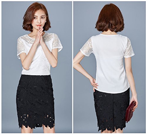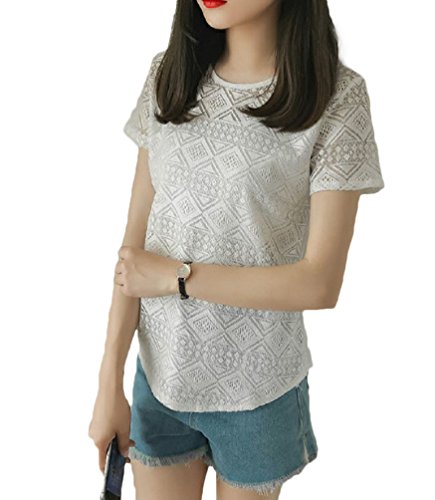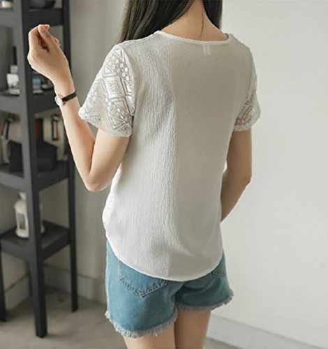 【Smile LaLa】 レディース tシャツ カットソー トップス 半袖 ゆったり ブラウス レース 夏 夏服 ゆったり (ホワイト, XL)