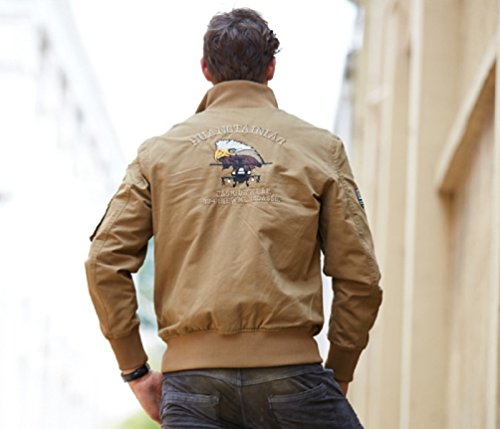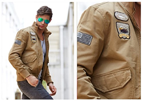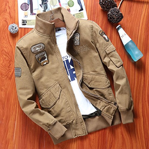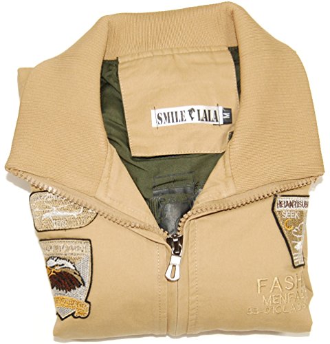 【Smile LaLa】 メンズ アメカジ ストリート ジャケット カーゴ ブルゾン サバイバル アウター 前開き 防寒 ロゴ 入り (ベージュ, XL)