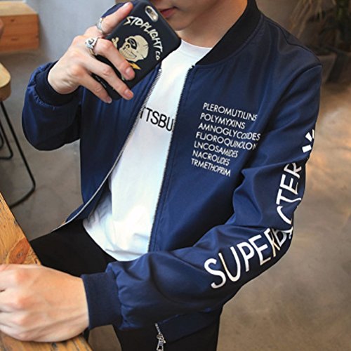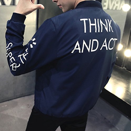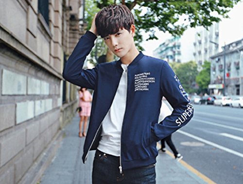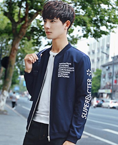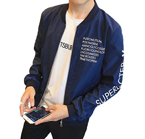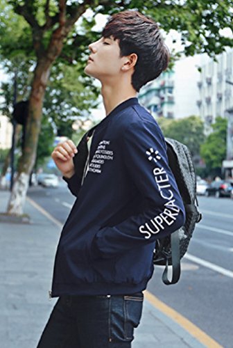 【Smile LaLa】 メンズ 英字 ロゴ ジャンパー ライト アウター シンプル カジュアル スタジャン MA-1 ブルゾン 防寒 ジャケット (XL, ネイビー)