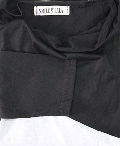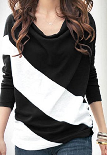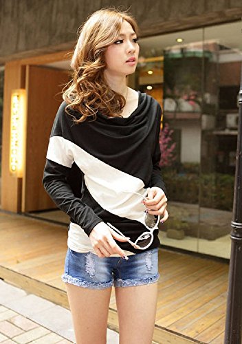 【Smile LaLa】 レディース Tシャツ カットソー トップス インナー シンプル バイカラー カジュアル 長袖 女性 無地 春服 秋服 (M, ブラック)