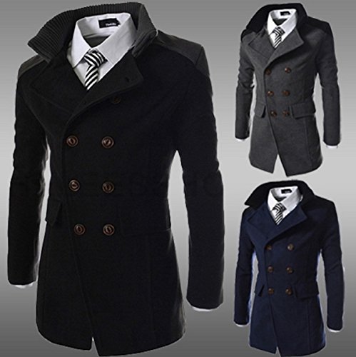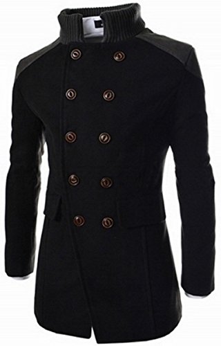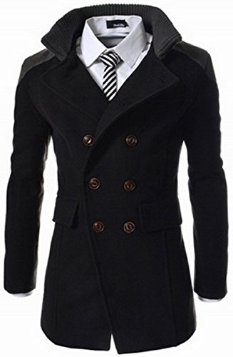 【Smile LaLa】 メンズ コート ビジネス ジャケット アウター 防寒 スーツ シンプル カジュアル 男性 紳士 ダブル ボタン シック (XL, ブラック)