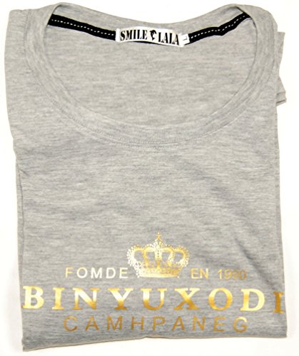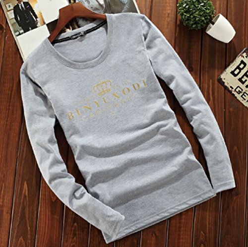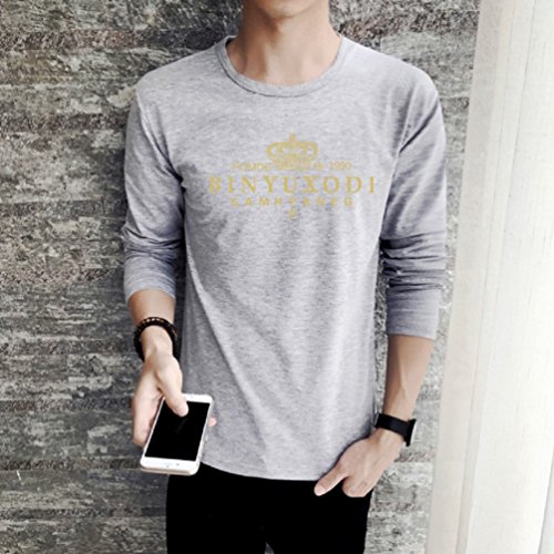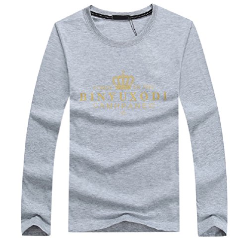 【Smile LaLa】 メンズ Tシャツ 長袖 王冠 クラウン 英字 ロゴ プリント クルー ネック シンプル スタイリッシュ カジュアル (グレー, M)