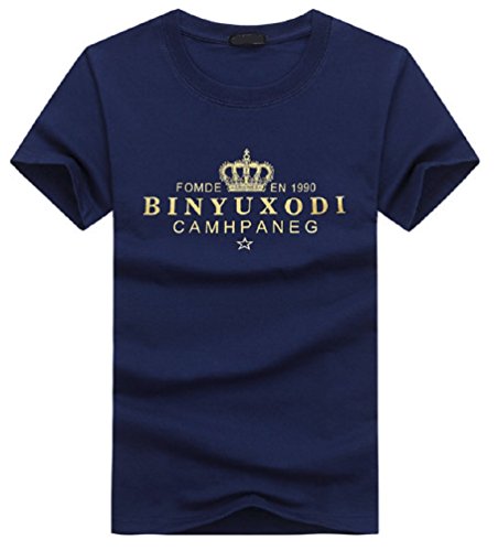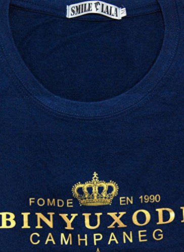 【Smile LaLa】 メンズ tシャツ カットソー 半袖 オシャレ プリント 無地 大きい サイズ 夏 シンプル クラウン (ネイビー, 2XL)