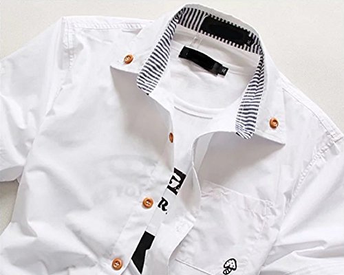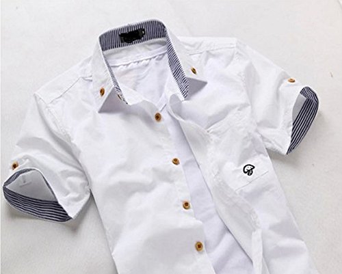 【Smile LaLa】 メンズ 半袖 シャツ ストライプ 無地 カジュアル シンプル カットソー ボタン 春服 夏服 男性 トップス (XL, ホワイト)