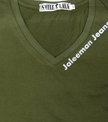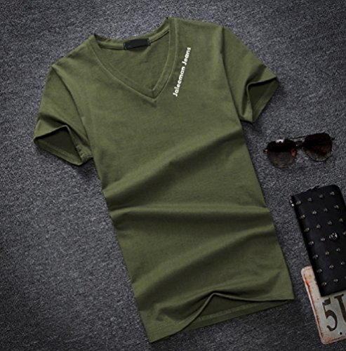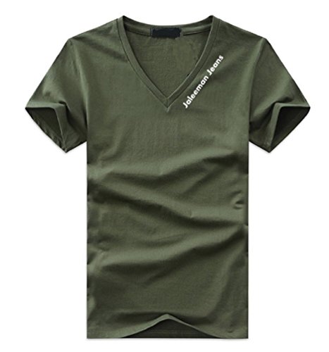 【Smile LaLa】 メンズ tシャツ カットソー vネック インナー 半袖 オシャレ 無地 大きい サイズ 夏 シンプル (カーキ, 3XL)