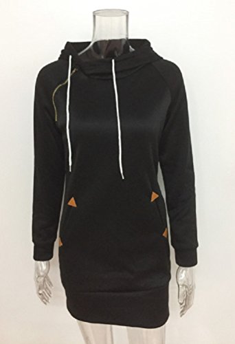 【Smile LaLa】 パーカー レディース ファッション トレーナー 長袖 ロング あったか シンプル ワンピ 無地 薄手 フード 付き (ブラック, L)
