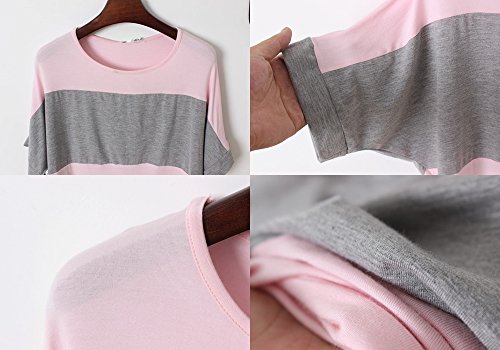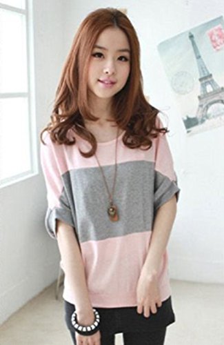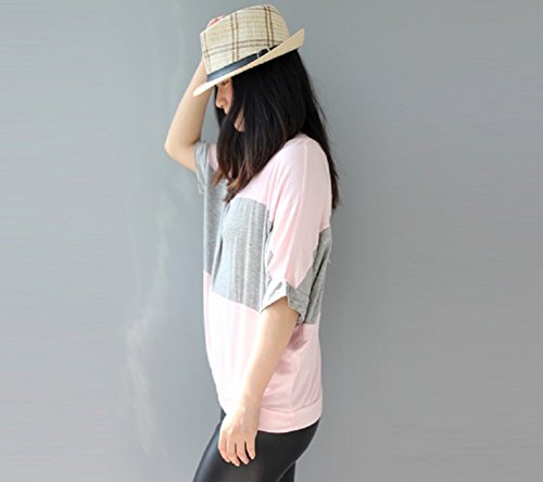 【Smile LaLa】 レディース シャツ トップス 半袖 夏 シンプル きれいめ ゆったり コーデ バイカラー (ピンク, XL)