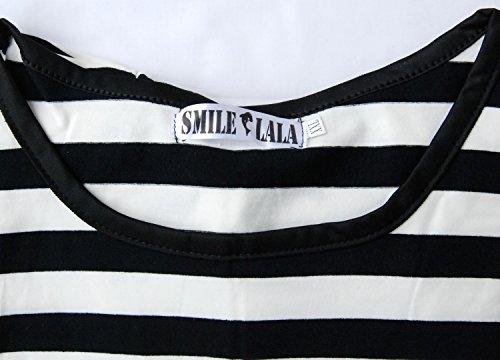 【Smile LaLa】 レディース ワンピース ワンピ ロング ミニ 丈 半袖 カジュアル 夏 ボーダー 大きい サイズ (ブラック, XL)