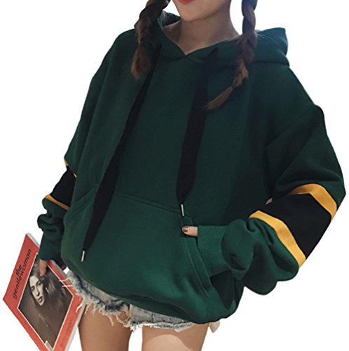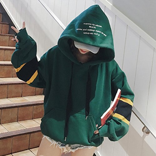 【Smile LaLa】 レディース パーカー スポーツ 春 秋 冬 長袖 カジュアル ゆったり プルオーバー フード 付き 裏起毛 スウェット (M, グリーン)