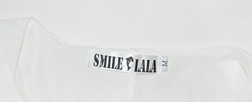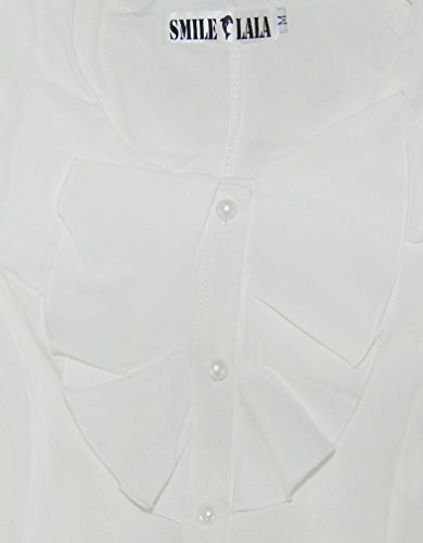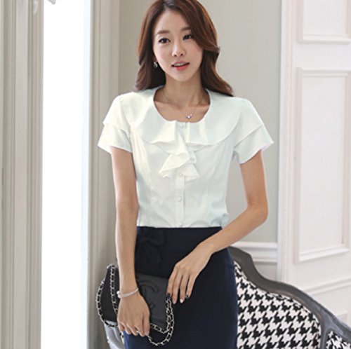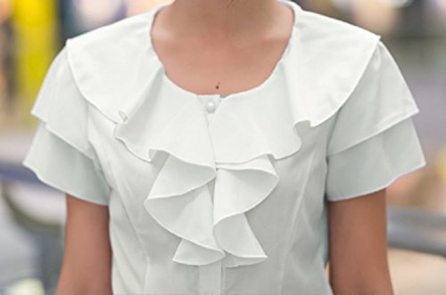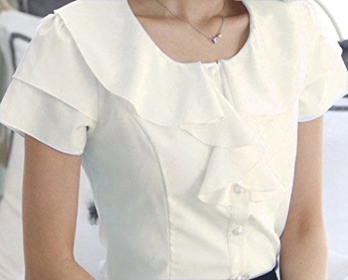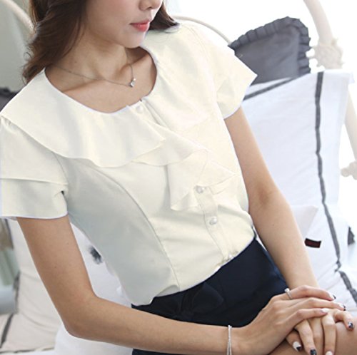 【Smile LaLa】 レディース ブラウス シャツ フォーマル フリル 通勤 オフィス 半袖 シンプル 無地 清楚 女性 シフォン 上品 (オフホワイト, L)