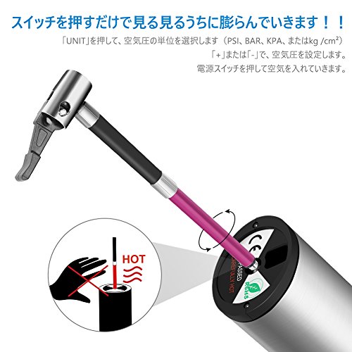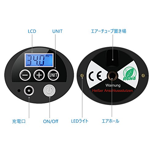 - LEDディスプレイとLEDライトが装備されていて、夜間でも数字が見やすく、安全に空気入れが可能です