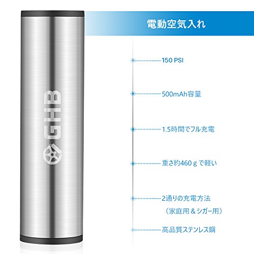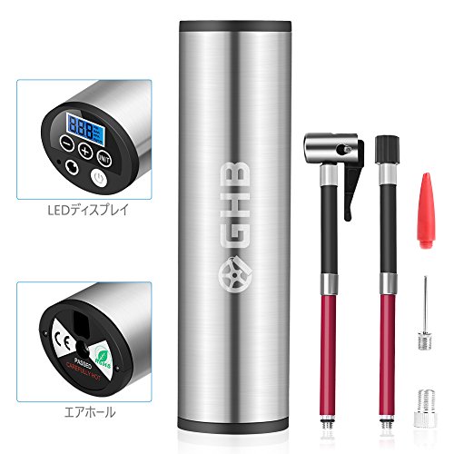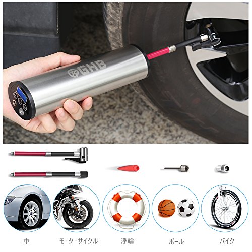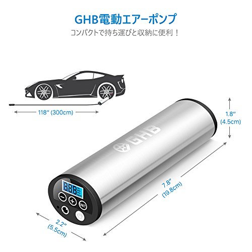 GHB 空気入れ 電動エアーポンプ 充電式インフレーダー コンパクト 携帯便利 米式/英式/仏式バルブ対応 シガーソケット接続でき LEDディスプレイ LEDライト付き 自動車/自電車/オートバイ/ボール/浮輪 タイヤ用 エアゲージ付き 【24ヶ月保証】