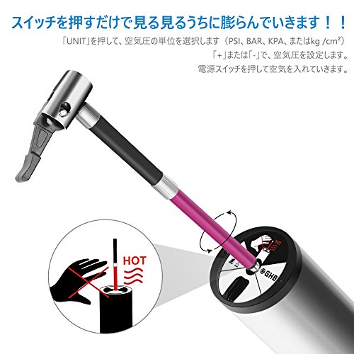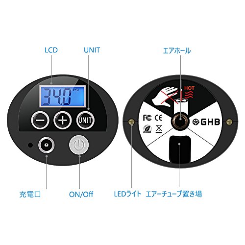 - LEDディスプレイとLEDライトが装備されていて、夜間でも数字が見やすく、安全に空気入れが可能です