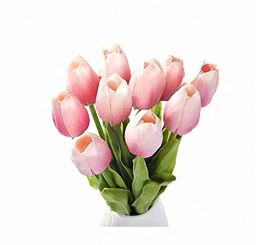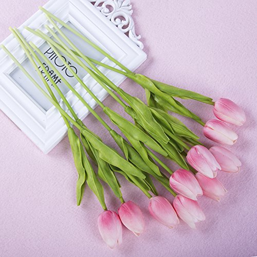 Smiry 高品質チューリップの造花 手作りブーケ 生け花 かわいい インテリア飾り 本物みたい ライトピンク