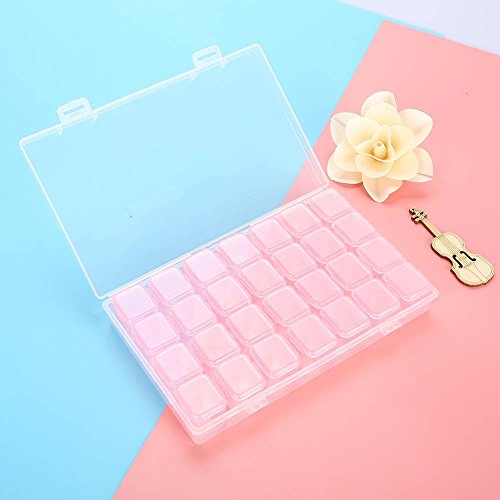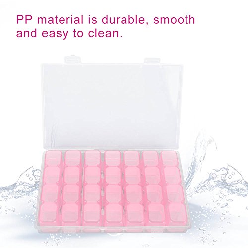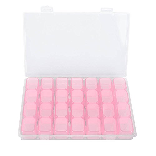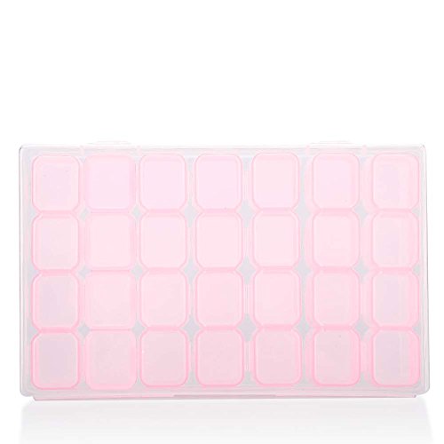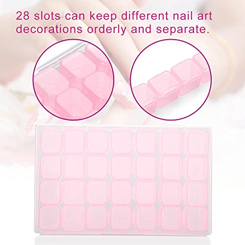 SoarUp ネイル収納ケース 小物入れ ネイルアートツールストレージボックス 装飾プラスチックラインストーン 宝石 ビーズ 透明 調整可能 2色 28スロット(ピンク)