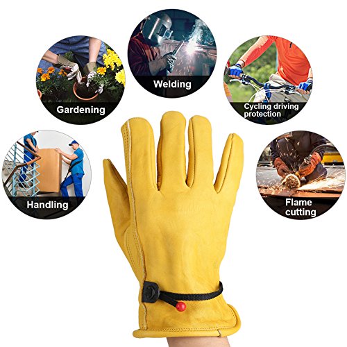 - タフなレザーは、取り扱い、ガーデニング、サイクリング運転保護、溶接、フレームカット、ガーデニング、機械操作作業などに適した滑りにくい耐摩耗性を防止します。