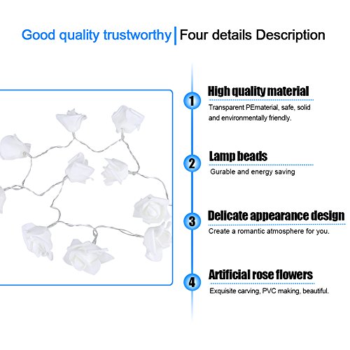 これらのローズ形状10 LED電球の結婚式の装飾ライトは、ポータブルで柔軟性があり、収納しやすいです。 光は、休日の雰囲気と柔らかく、非常に明るいです。 壁、窓、ドア、床、クリスマスツリーに掛けたときは、本当に美しくロマンチックです。