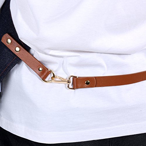 - ヘビーデューティデニムワークエプロン:丈夫で厚いデニムジーンズとレザーストラップで作られています。優れたステッチ、厚い上下の裾があります。