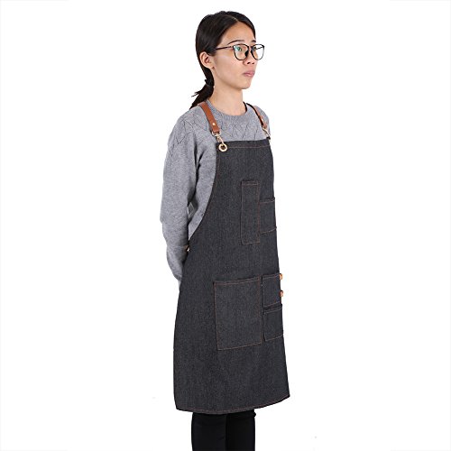 SoarUp エプロン エプロン デニム エプロン 黒 男女兼用 おしゃれ 美容師 花屋 画家 庭師 ウェイター 料理 掃除(C)