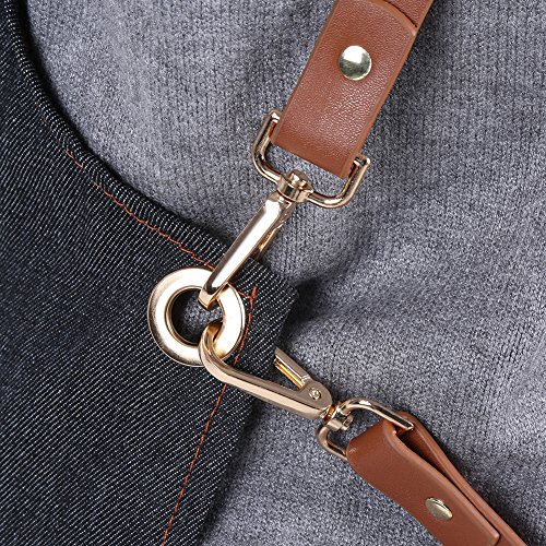 - ヘビーデューティデニムエプロン:丈夫で厚手のデニムジーンズとレザーストラップで作られています。 優れたスプライシング、厚い上下の裾があります。