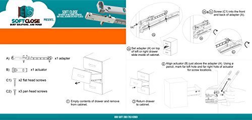 This SoftClose add-on for wood or melamine drawers is designed for easy installation without measuring. An easy answer to adding a the soft close feature to almost any existing drawer that has a 1/2 side clearance.