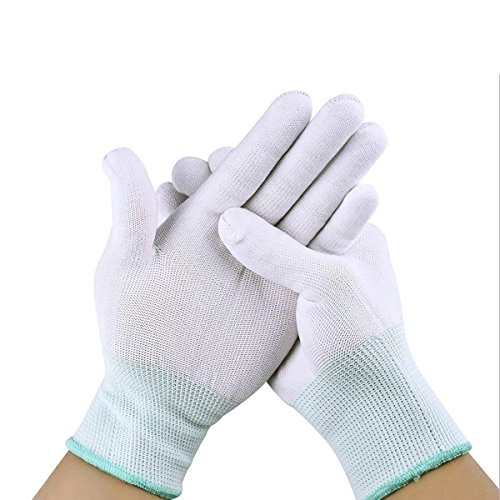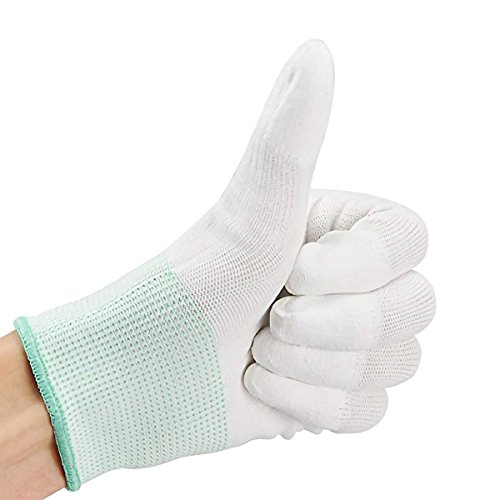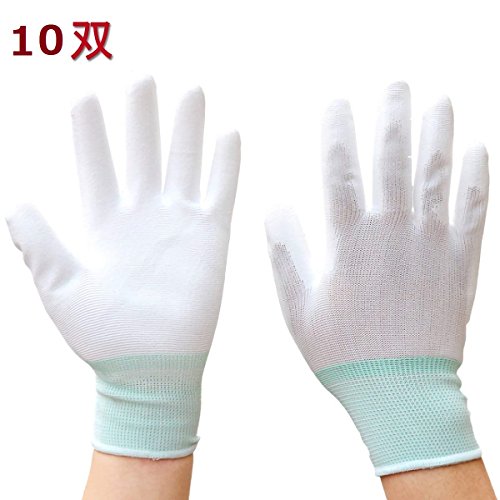 ナイロン手袋 ポリエステル手袋 パーム手袋 トップフィット手袋 検査・組立用手袋 強力すべり止め 作業用 (ホワイト&グリーン 10ペア)