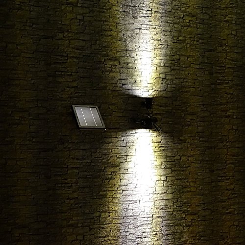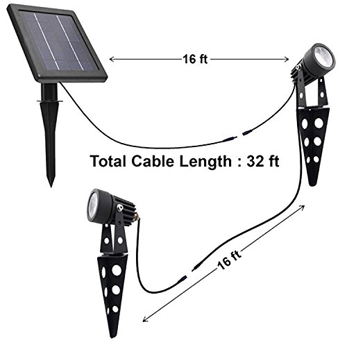 この装置には高度なソーラーパネルが搭載されており、茂みや木の後ろに隠したり、50倍も明るいソーラースポットライトの二つと接続することができます。ハロゲンライトに似た明るい白熱灯(3000k)でこれらを設計しました。照明器具あたり60-100ルーメン。