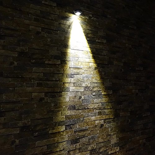 この装置には高度なソーラーパネルが搭載されており、茂みや木の後ろに隠したり、50倍も明るいソーラースポットライトの二つと接続することができます。ハロゲンライトに似た明るい白熱灯(3000k)でこれらを設計しました。照明器具あたり60-100ルーメン。